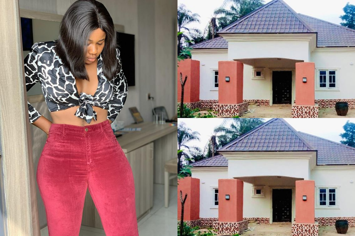 Peace Onuoha has built her first house and dedicated it to her late father as she took to social media to share a photo of the house.