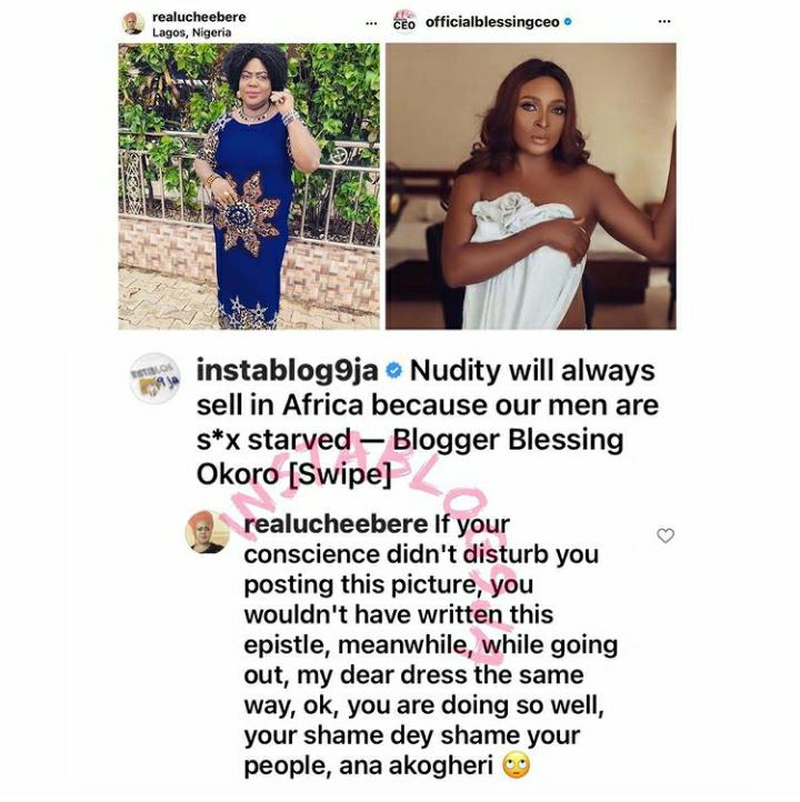 Uche Ebere has slammed Blessing Okoro for shamefully defending her nude photo after claiming nudity will always sell in Africa.