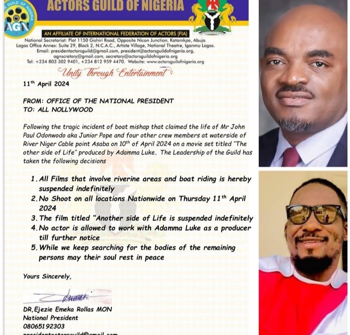 - Indefinite Suspension of Films Featuring Riverine Areas: The AGN has taken the proactive step of indefinitely suspending the production of movies set in riverine areas. This temporary halt aims to mitigate the risks associated with filming in such locations and prevent any further accidents or loss of life.