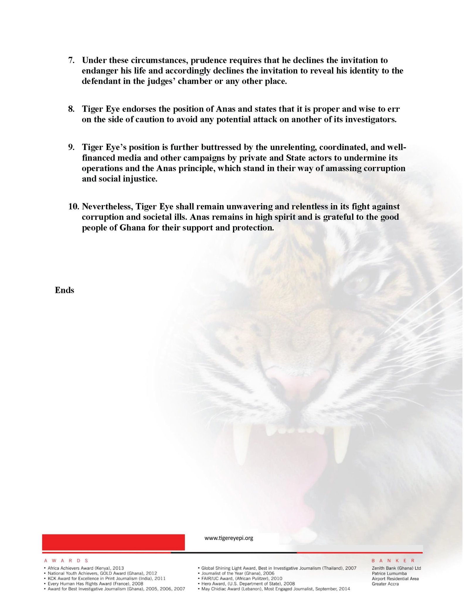 Read the full statement by Tiger Eye PI below: