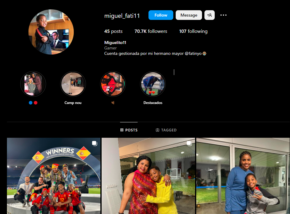 Miguel is very popular on Instagram. His username is miguel_fati11 and he has 70.7K followers.