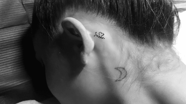 Ariana has a tattoo of a crescent half-moon on the back of her neck.