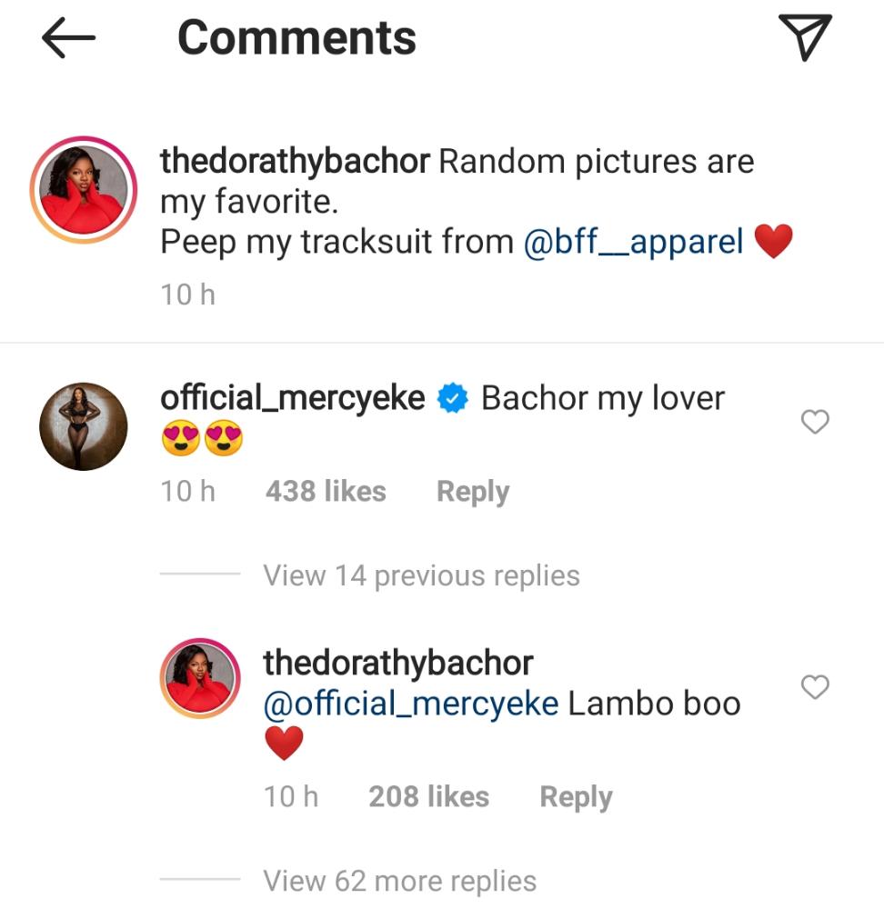 Also reacting to the photo, BBNaija season 4 winner Mercy Eke, took to the comment section and wrote, “Bachor my lover”.