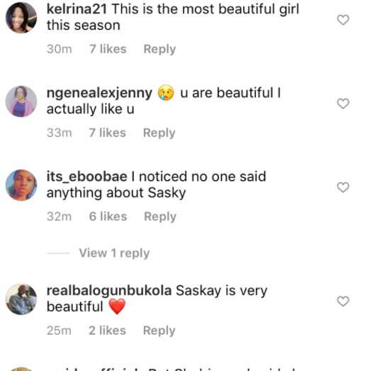 “Maybe because I’m the smallest in the house, they don’t usually take my opinions”, she added. However, this statement by Saskay has gotten reactions from viewers as they address her as the most beautiful housemate in the house.
