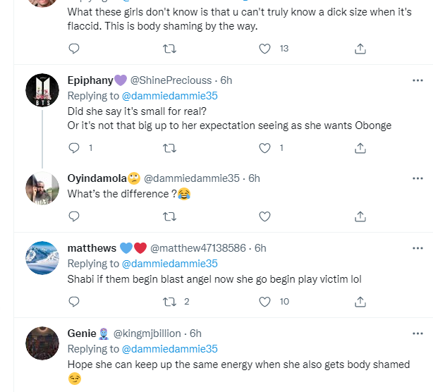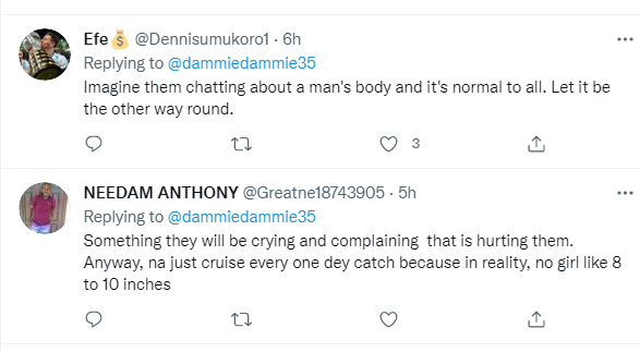 The conversation between the two received some negative reactions from fans, especially the men, who seemed to believe that, their discussion about the d*ck sizes of the guys is body-shaming.