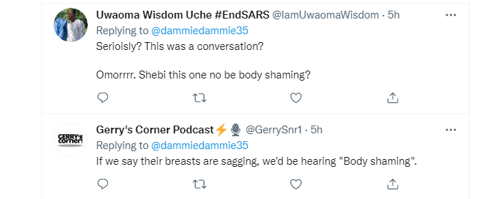 Many believed if the tables were turned and the guys were the ones discussing the bodies of the ladies like this, they would accuse them of body-shaming the girls.