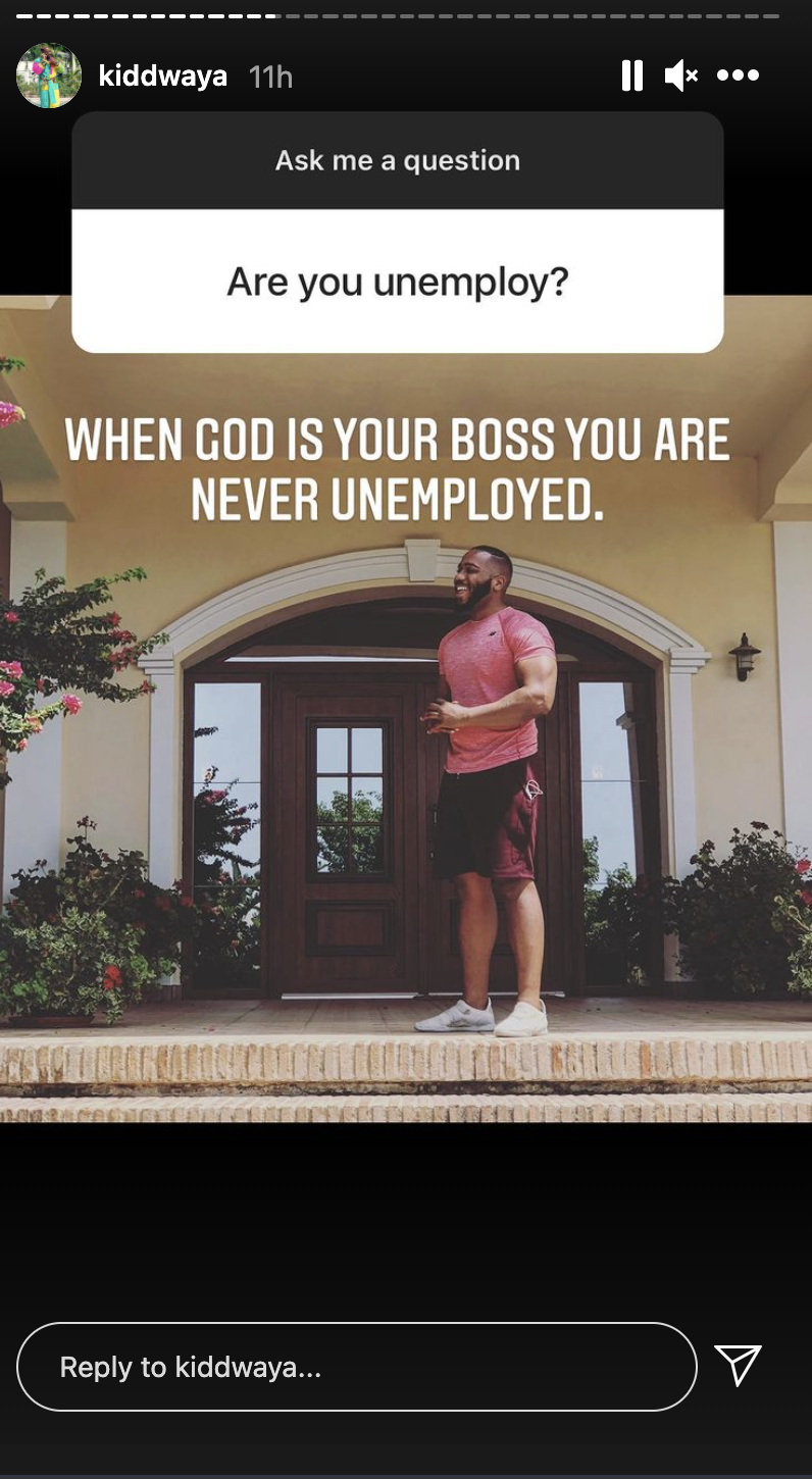He replied with a message that when one has God as a boss, there is no way he or she would be unemployed.