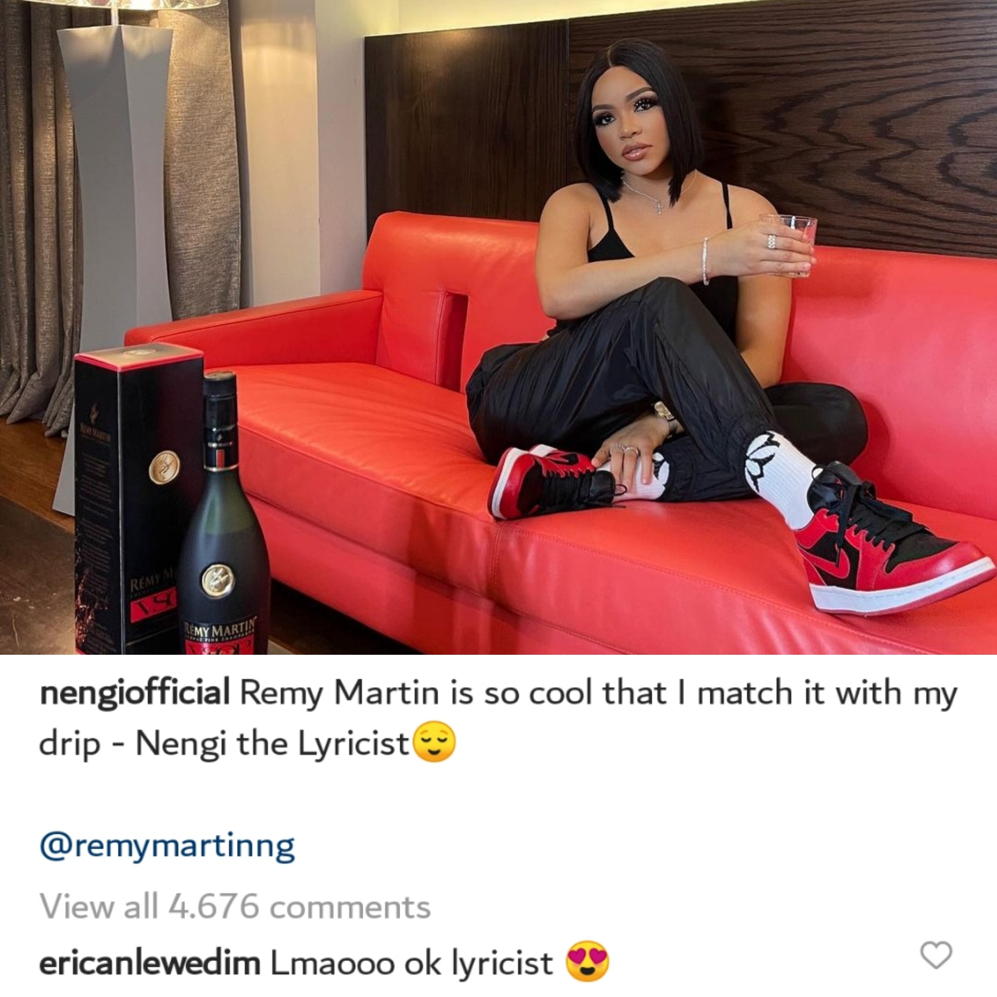 Nengi shared a commercial photo for Remy Martic and in the caption, she called herself “Nengi the Lyricist.”
