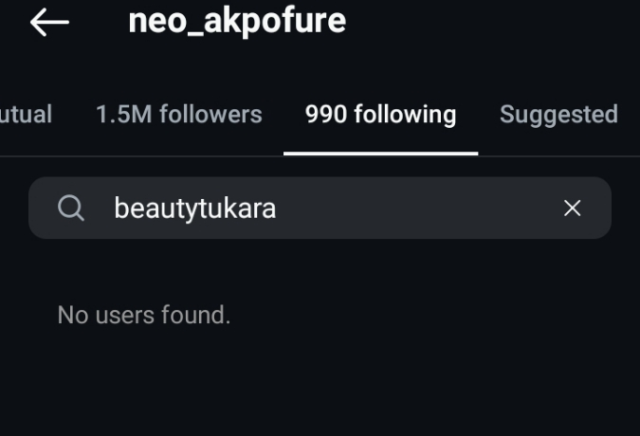 Big Brother Naija’s Neo Akpofure and Beauty Tukura have set the rumor mill abuzz by unfollowing each other on Instagram, leading to speculation about the status of their relationship.