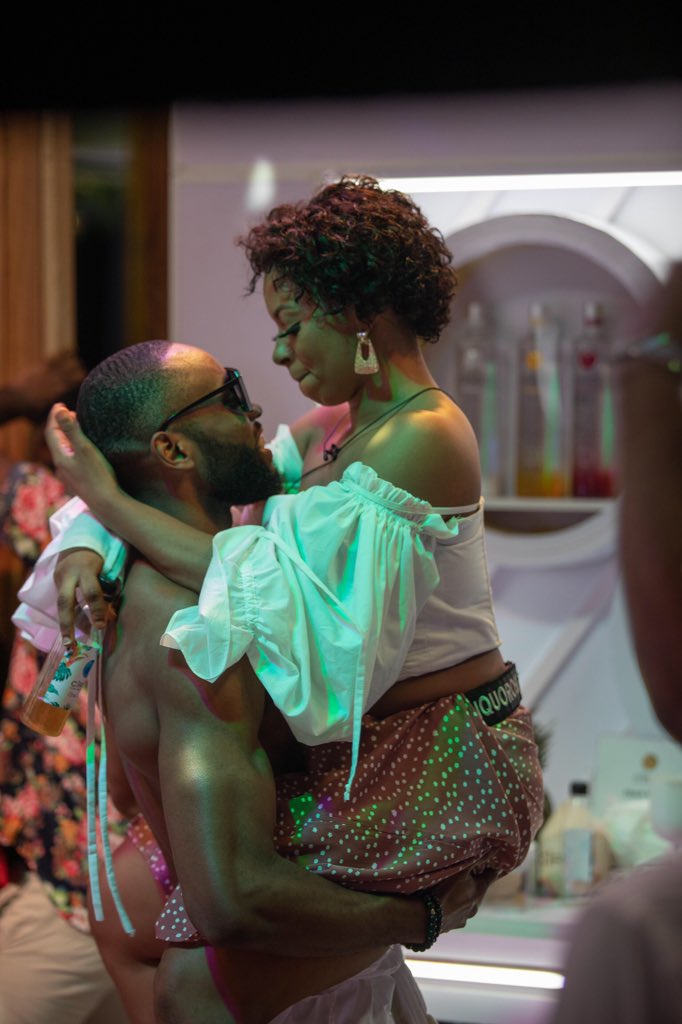 In a video sighted on the internet, the duo was seen kissing and cuddling each other in the presence of controversial housemates, Tega and Boma. Tega was heard shouting with joy after she saw her colleagues having fun as lovers.