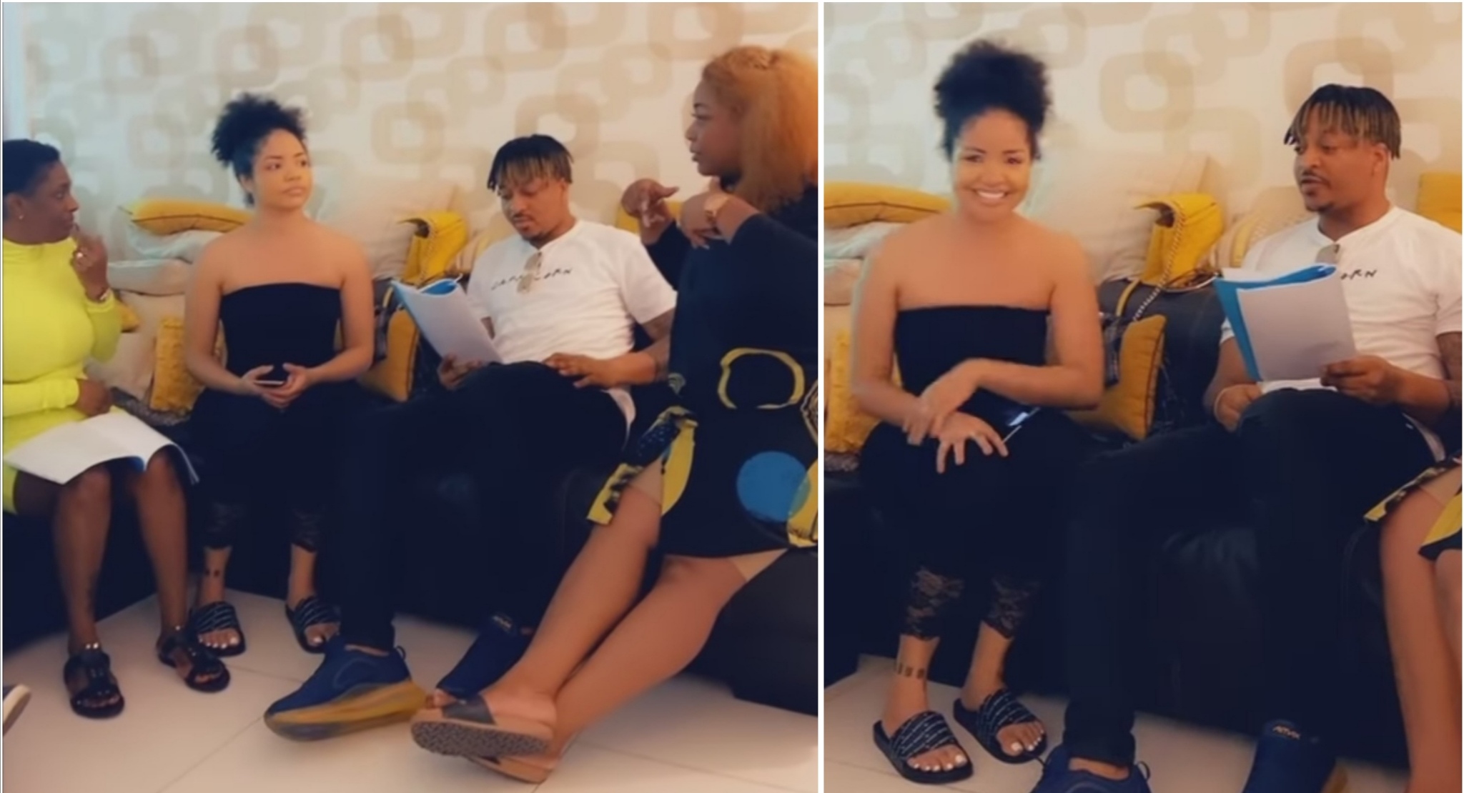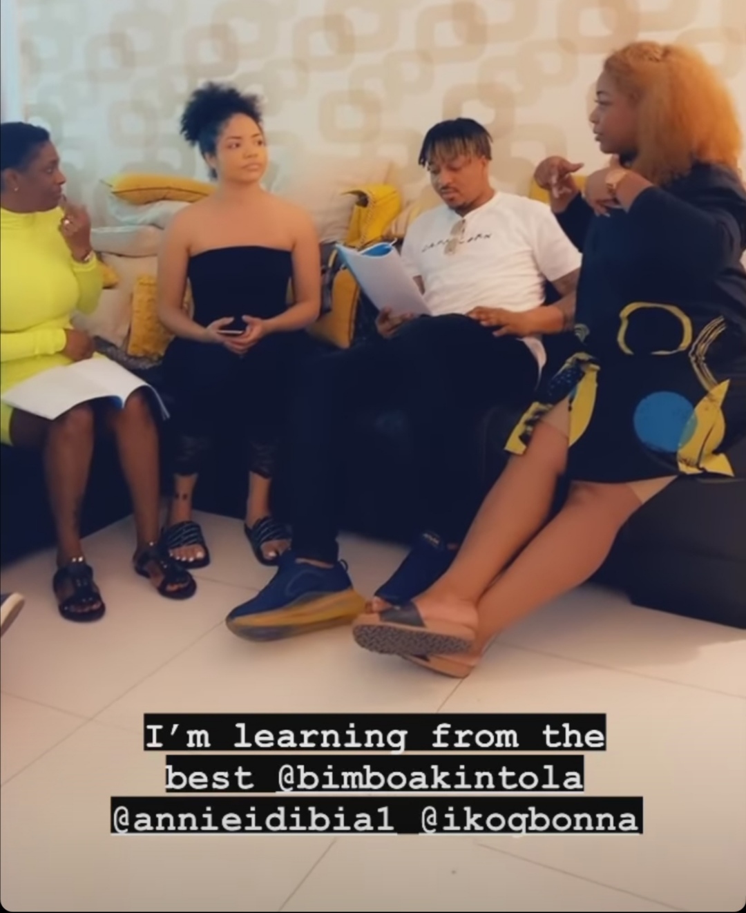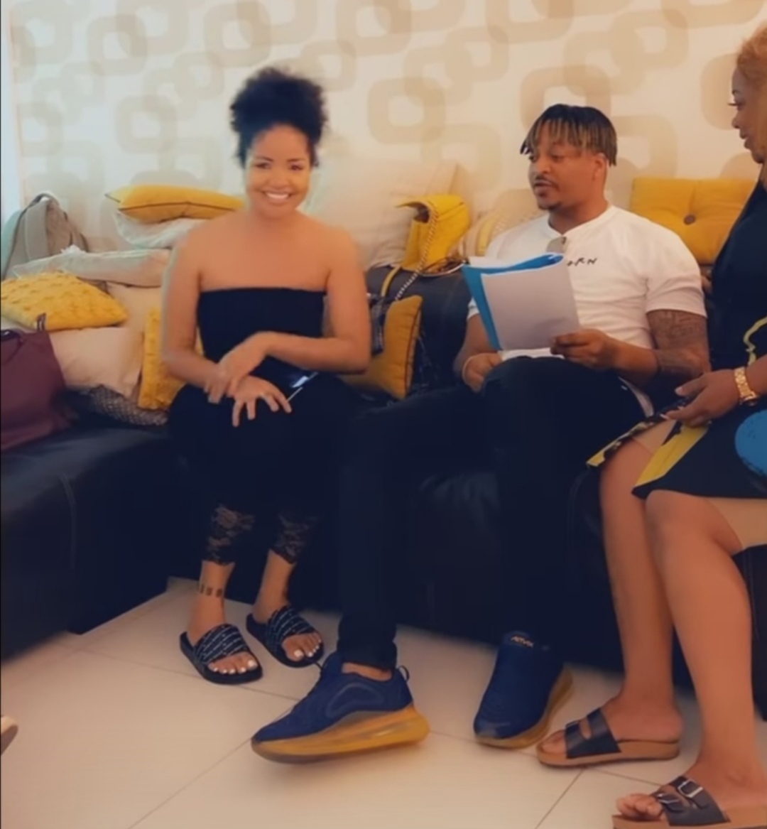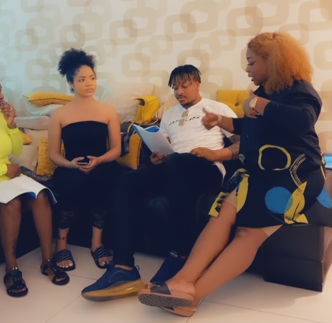 Nengi was seen with actors, Annie Idibia, Bimbo Akintola, Ikechukwu Igbonna, and others, who were all holding scripts in their hands as Nengi is seen practicing with Ogbonna, who might be a boyfriend in the movie.