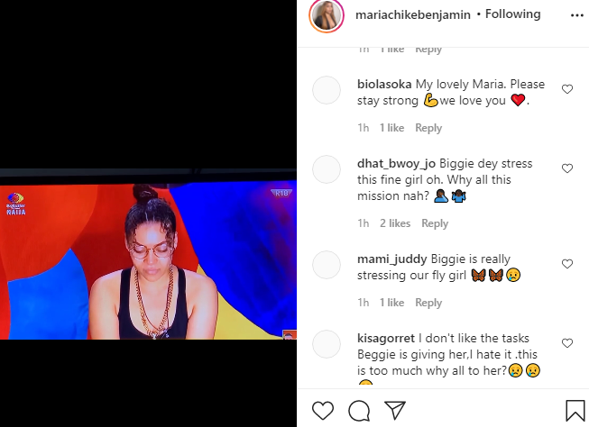Housemates were told on Monday that, Maria, who is currently the Head Of House, will be given the privilege to nominate four housemates to be evicted come Sunday.