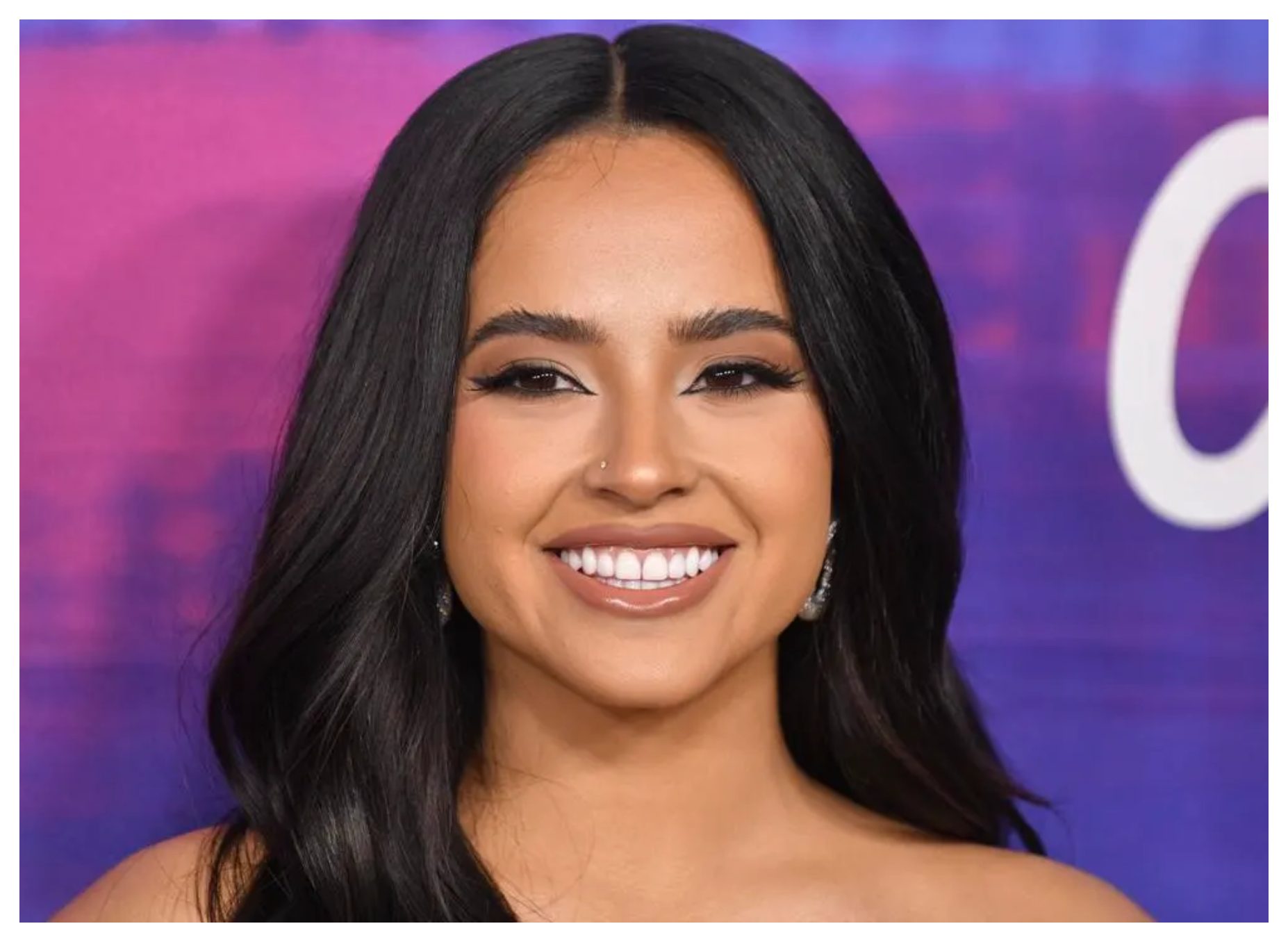 Becky G captivated the audience from the moment she stepped onto the stage, clad in a striking two-piece black bralette and skirt ensemble accentuated by long gloves. As she began her solo performance, the intensity of the song was palpable, drawing viewers into its fiery narrative.