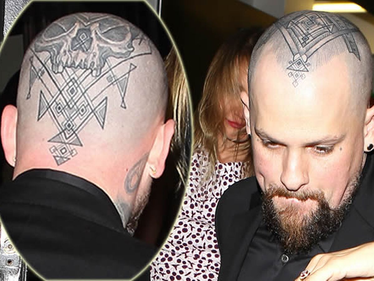 Does Benji Madden have tattoos on his head? Benji Madden has a massive tattoo on his shaved head.