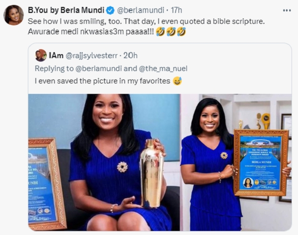 Her tweet humorously captured her feelings: “”See how I was smiling, too. That day, I even quoted a bible scripture. Awurade medi nkwasias3m paaaa!!!”