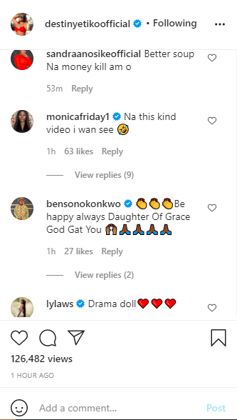 After sharing the video, winner of 2019 Big Brother Naija Mercy Eke, Uche Elendu Etinosa, BBNaija season five former housemate Ka3na Jones, Uche Ogbodo, Sharon Francis, Sandra Anosike and many others took to the comment section and thrown their support behind the beautiful actress.