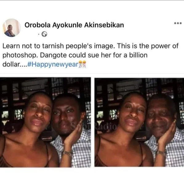 He then explained that Dangote’s head in the photo was edited and fixed on the other photo he shared to frame Aliko Dangote. He advised that, users become vigilant to be able to rule out fake news from real ones.