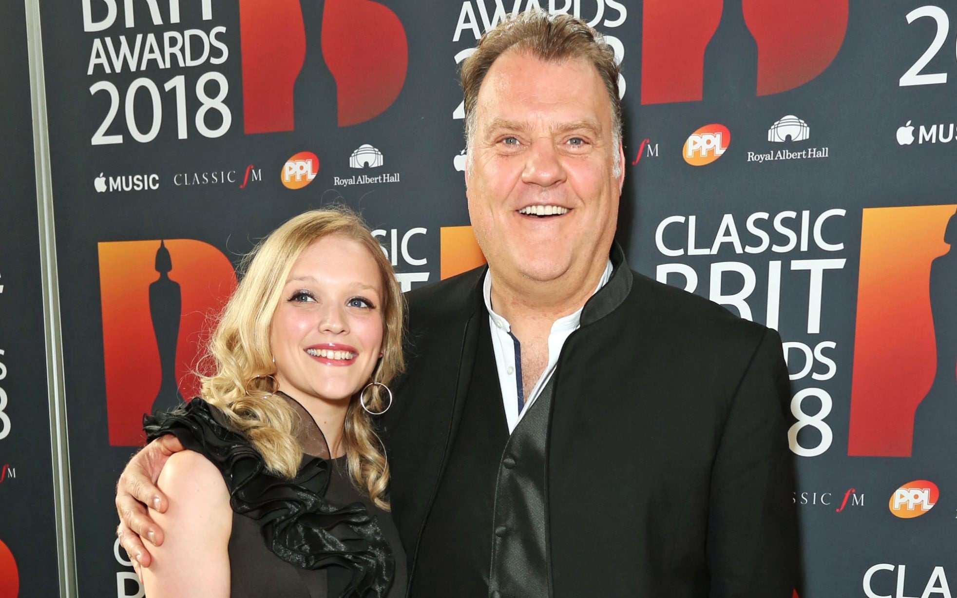 With harpist Hannah Stone, whom he married in 2019 CREDIT: PA