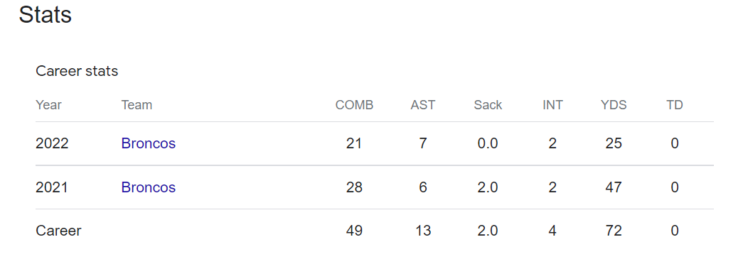 As of 2023, Caden Sterns plays for the Denver Broncos of the National Football League.