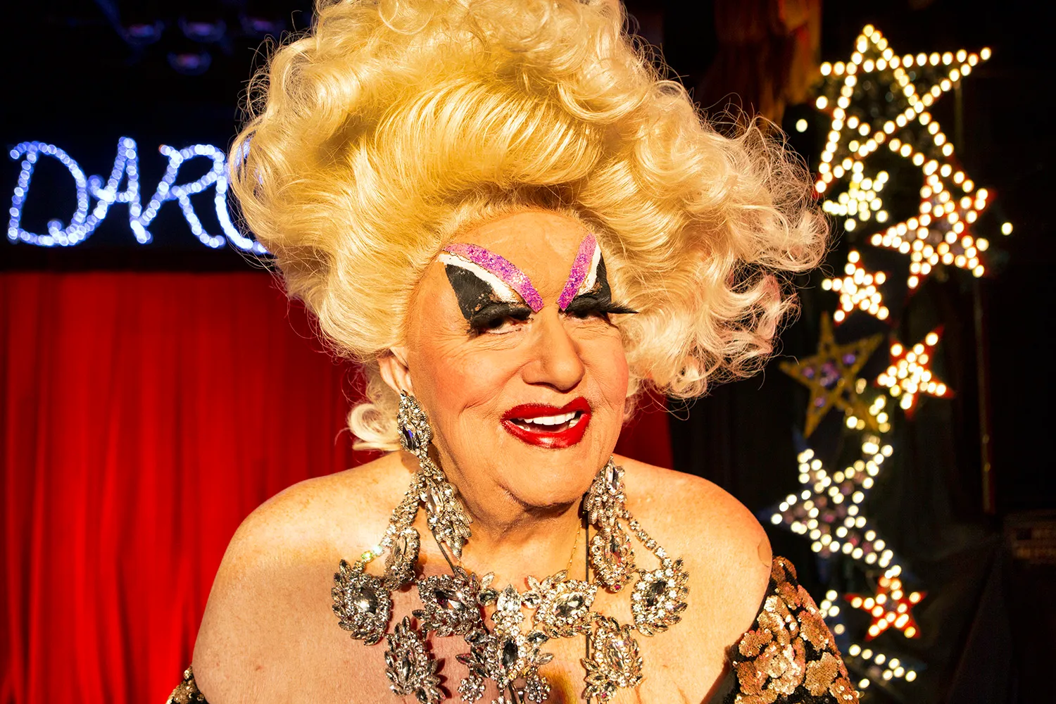In 2021 a documentary called Maisie was released. This featured English drag artist, David Raven who works under the name of Maisie Trollette. He is the oldest UK drag artiste still working, turning 85 in 2021. At Legends in Brighton, Maisie met Darcelle after Raven had earlier met him at the Brighton Hotel.