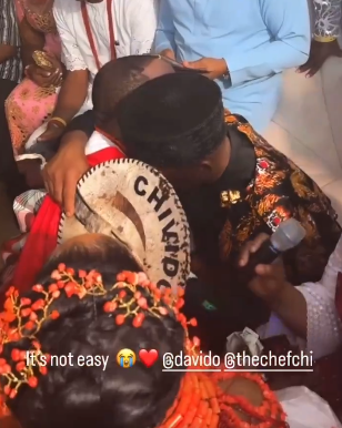 When Chioma’s father blessed their union with a prayer, Davido was unable to hold back his tears.