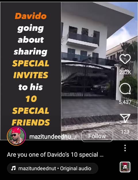 Renowned Nigerian singer, Davido, was observed personally extending invitations to his ten closest friends ahead of his upcoming wedding.