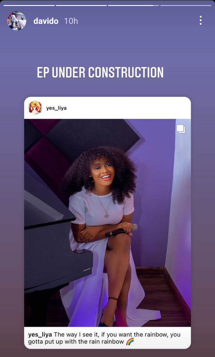 Davido reposted the picture on his Instastory and attached the caption, ‘EP UNDER CONSTRUCTION”.