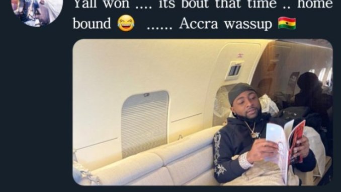 However, in a new post sighted on his Instagram page, the father of three was seen in a private jet as he flies to Ghana to release some stress. Sharing the photos on his page, he attached the caption, “Y’all won… it’s bout that time… home bound… Accra wassup”.