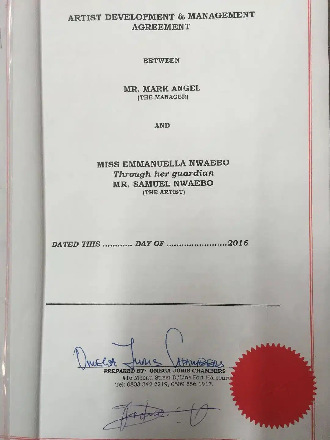 After many people criticized him for these claims, Denilson decided to show proof. He released a document that he says is the agreement between Mark and Emmanuella.