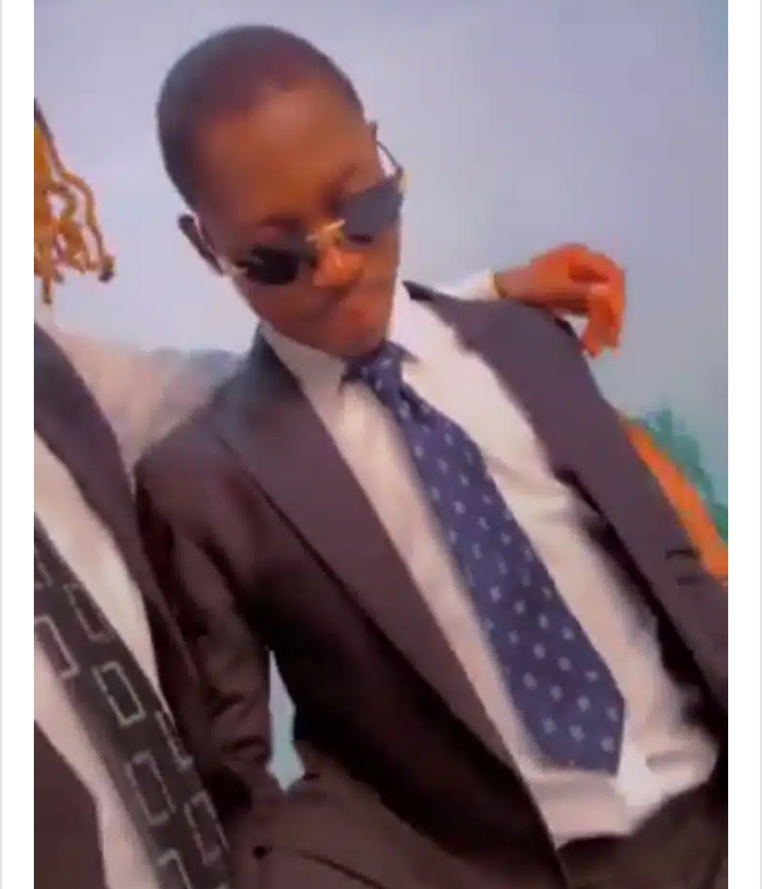 An artist who was with DJ Chicken on set recorded him in this dapper outfit, giving fans a close-up view of the surprising transformation.
