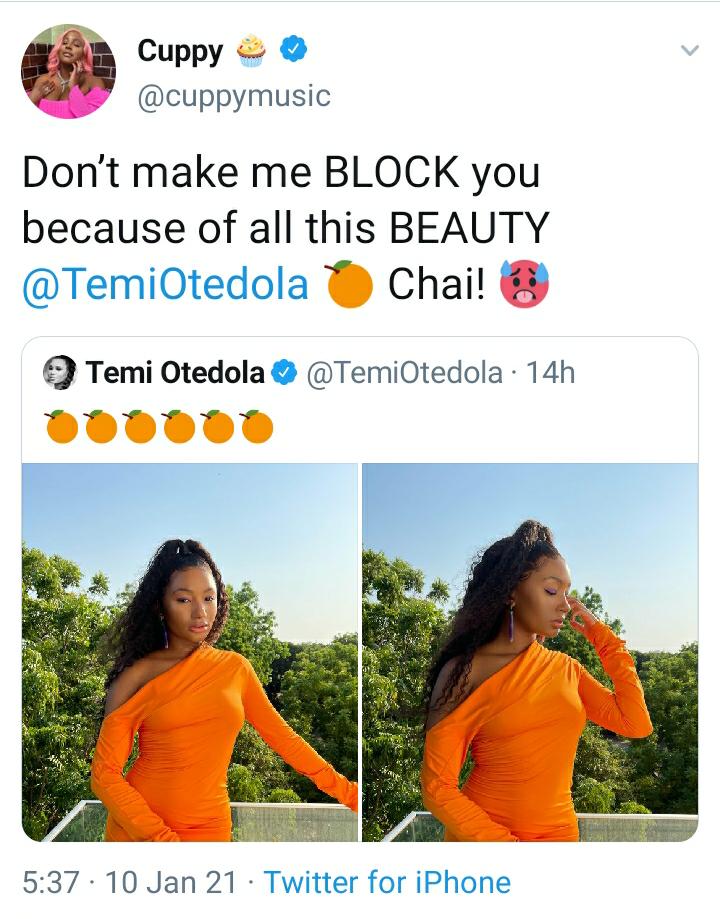 DJ Cuppy has threatened to block her sister Temi Otedola on social media because of her beauty.