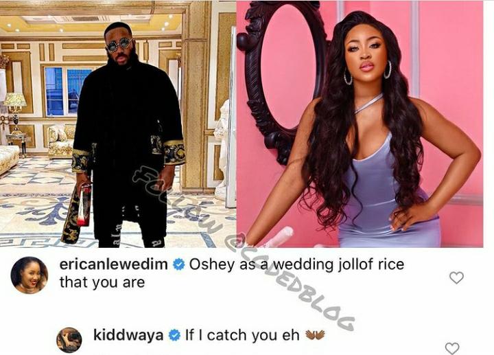 Reacting to this post, Erica took to the comment section and said, “Oshey as a wedding jollof rice that you are”.