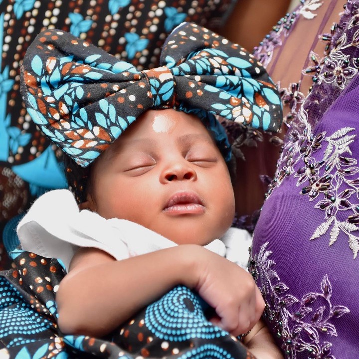 In the photos from the naming ceremony shared, she flaunted herself, daughter, mother, and her baby daddy. However, she used an emoji to cover his face from her fans. The name given to her daughter is Ofure Izoduwa Christabel.