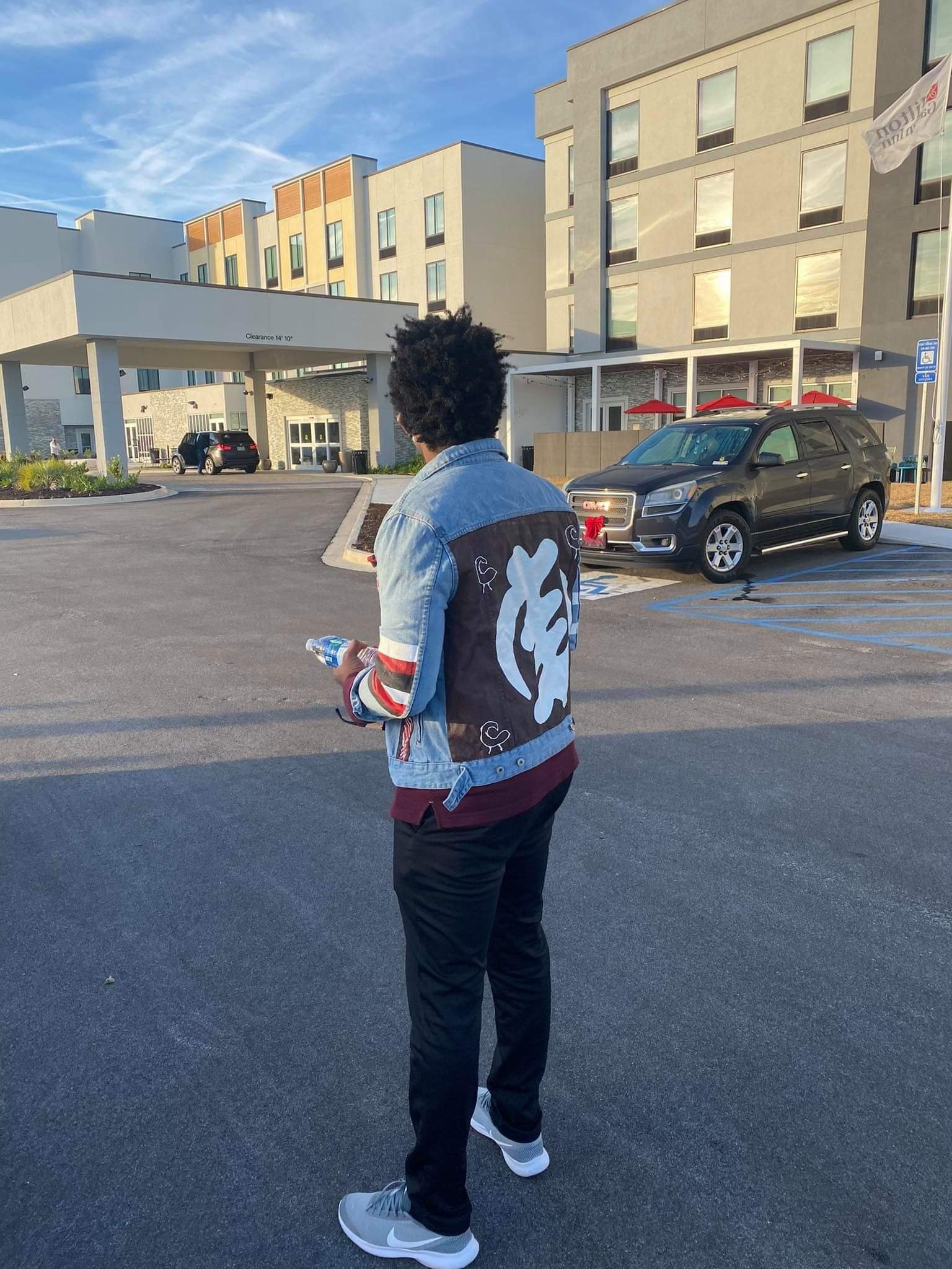 Anas dropped a photo of himself with his back facing the camera and warned;