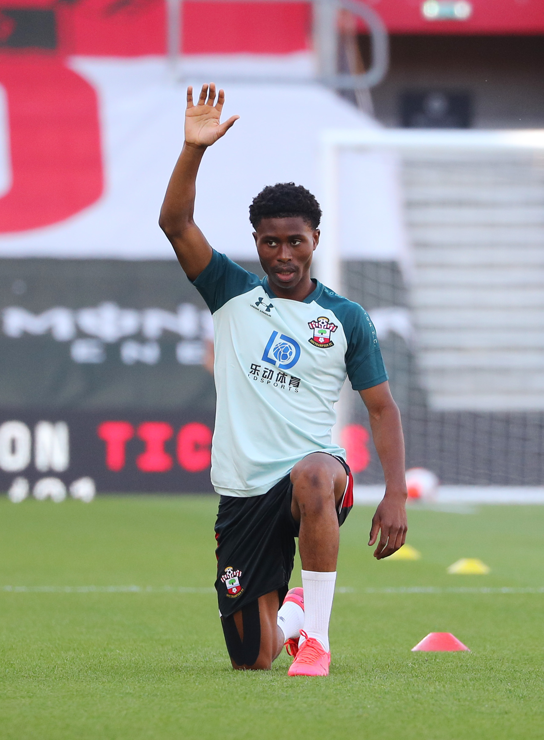 Southampton’s Kyle Walker-Peters warming up before the Premier League Match between Southampton and Arsenal. Photo by Stuart Martin.