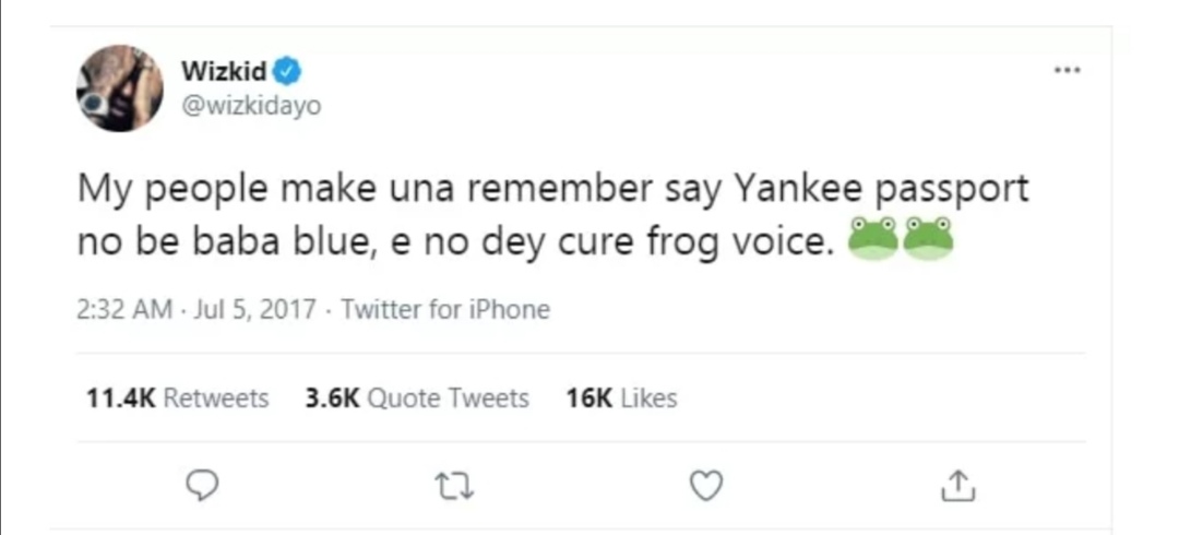 It will be recalled that, in 2017, Wizkid threw a jab at Davido during one of their social media wars and Wiz had said Davido had a “frog voice.”