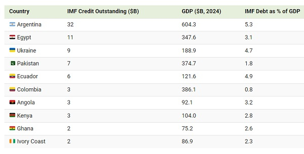 According to the IMF’s latest debt data, Ghana ranks among the top countries with substantial debt owed to the Fund.