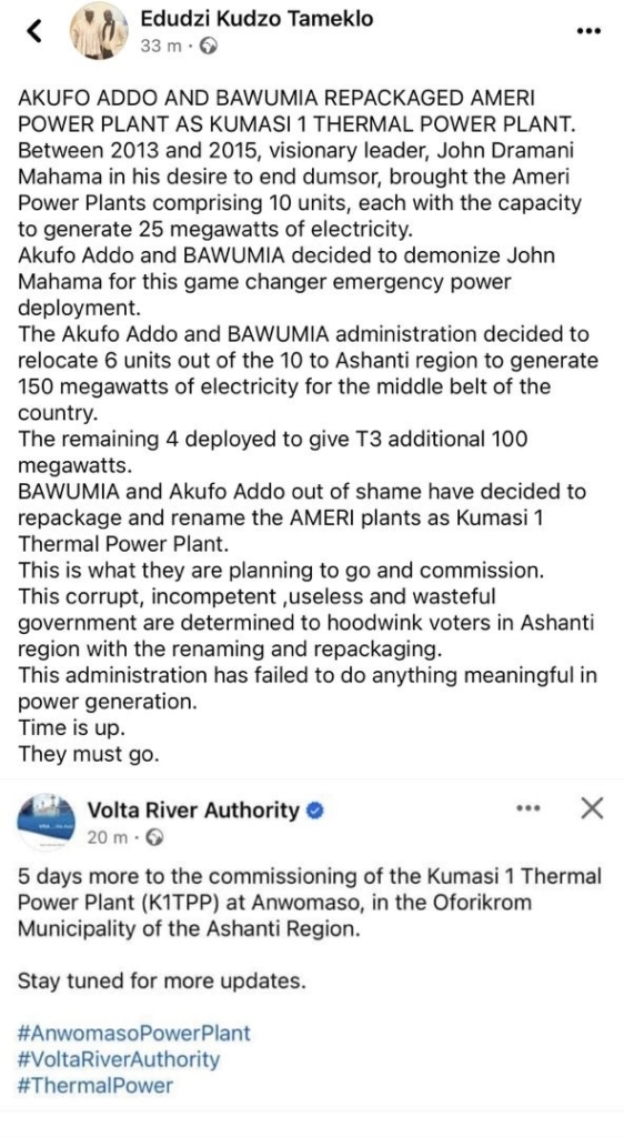Mr. Tameklo affirmed Akufo Addo and BAWUMIA opted to vilify John Mahama for this significant emergency power deployment “Akufo Addo and BAWUMIA decided to demonize John Mahama for this game changer emergency power deployment.”