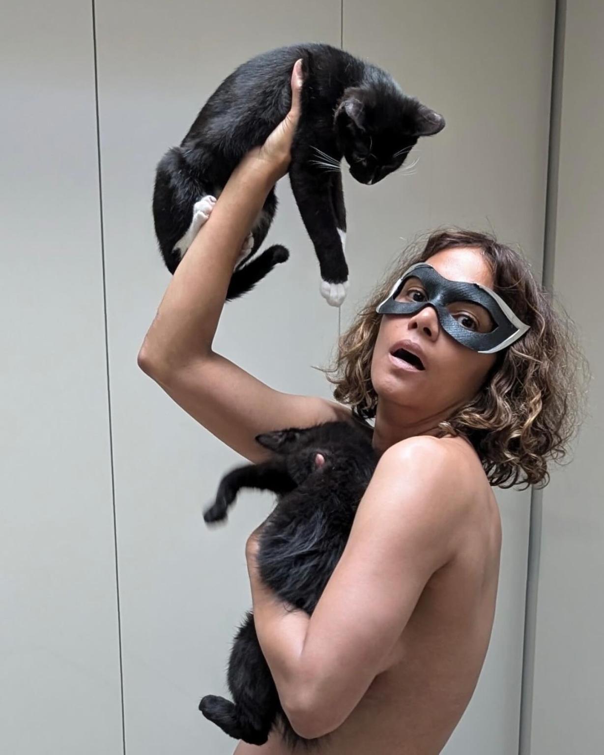 Halle Berry Celebrates 20 Years of ‘Catwoman’ with Topless Cat Photo Shoot