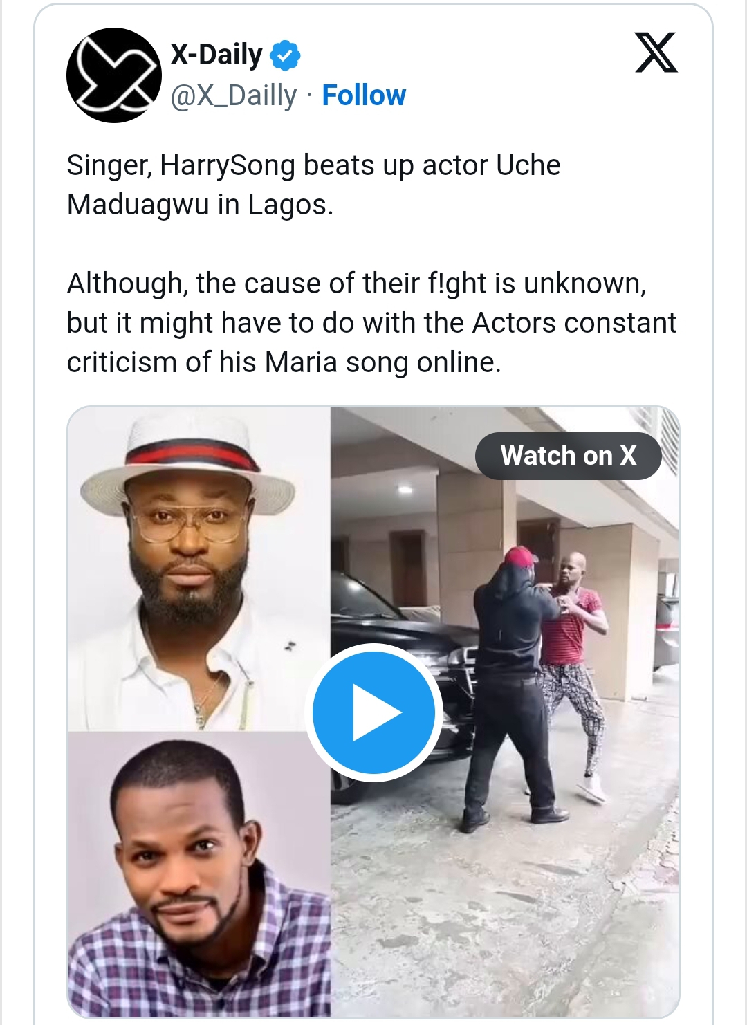 Nigerian singer and songwriter HarrySong has stirred controversy on social media following a heated exchange with actor Uche Maduagwu.