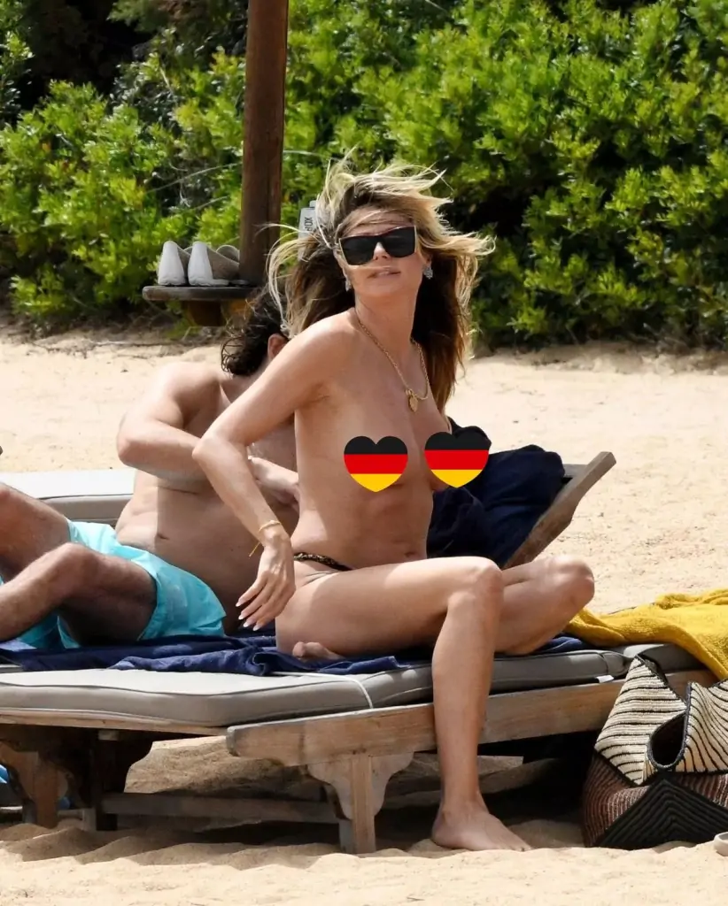 Heidi Klum, a German-American model, television personality, producer, and entrepreneur, was seen wearing only bikini bottoms while she relaxed on a lavish vacation.