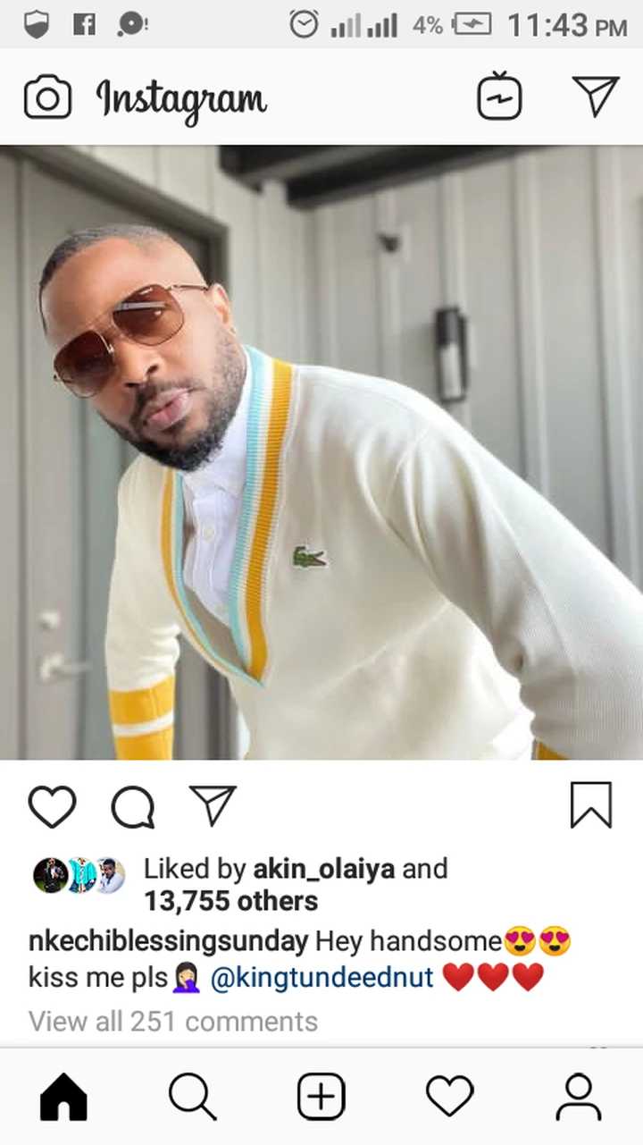Well, he is finally back on the platform again with fresh photos of himself, which got Nkechi Blessing gushed over his looks as she shared a picture of him and begged him to kiss her.