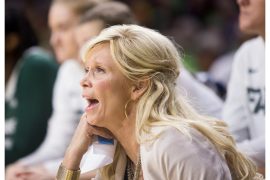 With an overall record of 327-168 for the Spartans over her 16 seasons at MSU, she rose to the position of second-winningest head coach in the history of the program. Merchant won two Big Ten championships and made ten NCAA Tournament appearances.