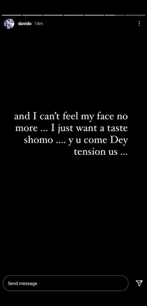Sharing new photos of himself on his Instagram story, Davido stated that he cannot feel his face any more.