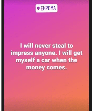 “I will never steal to impress anyone. I will get myself a car when the money comes”.