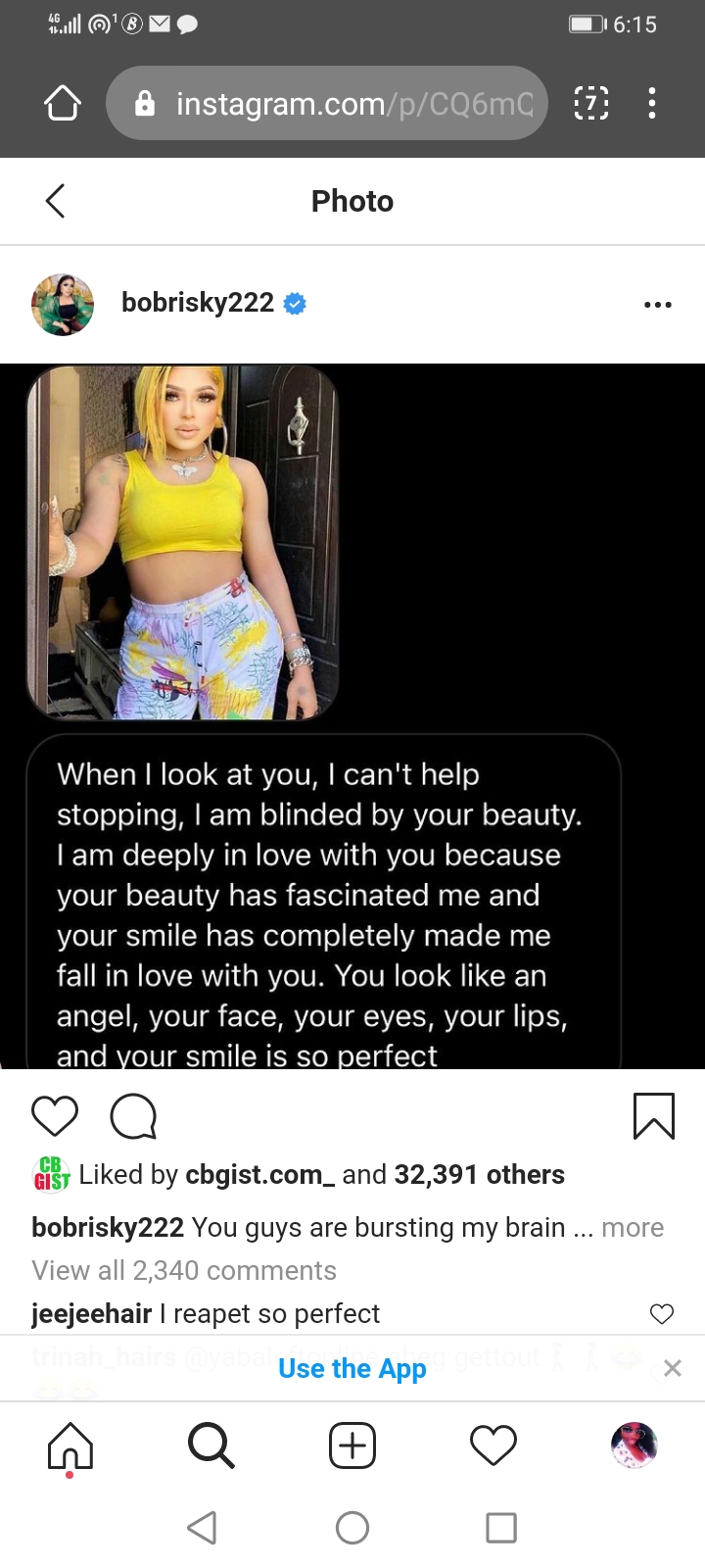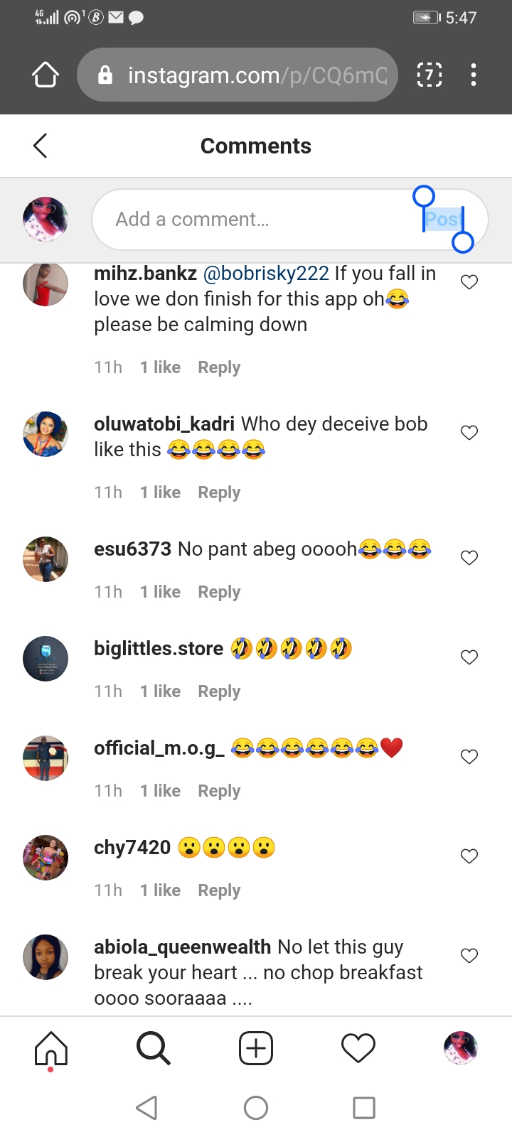 Bobrisky indicated that she personally like the words that were used in the proposal of the annonymous sender. This got her fans to react in her comment section to advise her some things to not do because some people are scams. Some users complimented her personality and how she lives her life. However, she was advised to wise up and be alert. Some people told her to not off her pants for anybody because that isn’t what she taught her daughters.