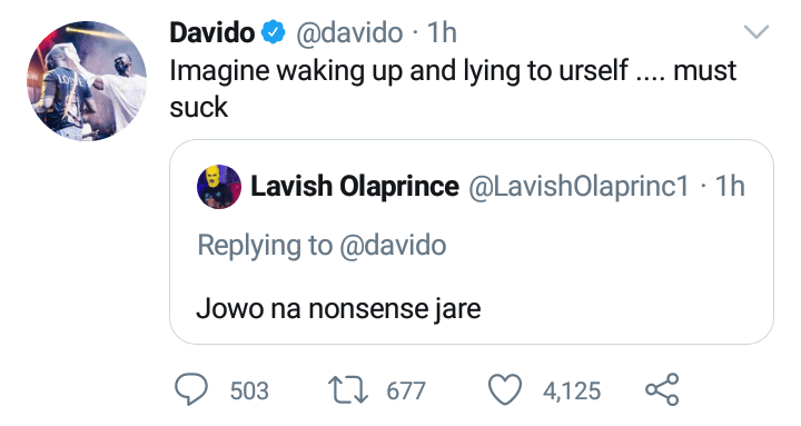 “Imagine Waking Up And Lying To Yourself” – Davido Replies Troll Who Said His ‘Jowo’ Song Is Trashed