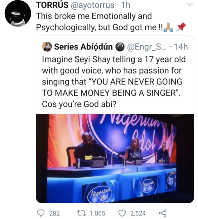 Ayo Torrus, the contestant who was ridiculed by Seyi Shay, has finally spoken after news of his encounter with the singer surfaced on the internet.