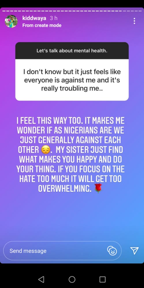 In response to this, Kiddwaya wrote, “I feel the same way too. It makes me wonder if Nigerians are generally against each other. My sister, just find what makes you happy and do your thing. If you focus on the hate too much, it becomes overwhelming.