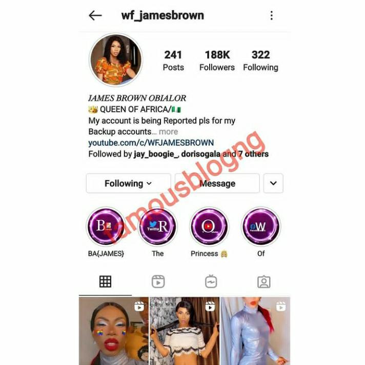 Okuneye Idris Olanrewaju, popularly known as Bobrisky, was accused by many social media users of being the one behind James Brown’s account suspension. Bobrisky reacting to it, took to Instagram and said ever since he joined Instagram, he has never reported a page before.